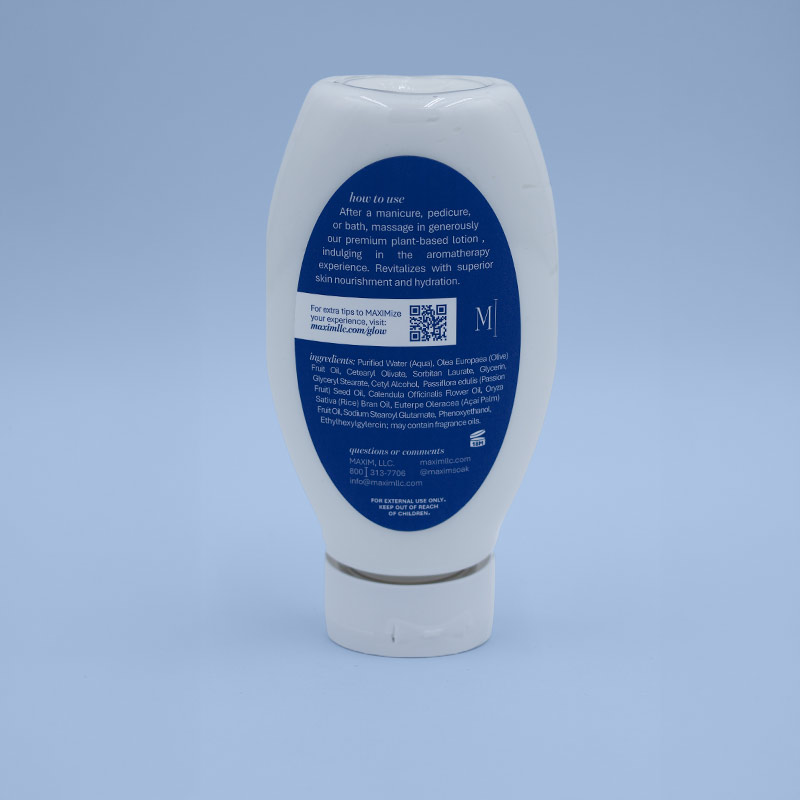 After a manicure, pedicure, or bath, massage in generously our premium plant-based lotion, indulging in the aromatherapy experience. Revitalizes with superior skin nourishment and hydration.