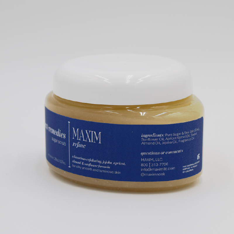 MAXIM Refine is a professional-grade sugar and salt exfoliating scrub designed to buff away dryness and refine skin texture while supporting the skin’s natural moisture balance. It gently polishes the skin while nourishing with botanical oils for a smooth, radiant finish.